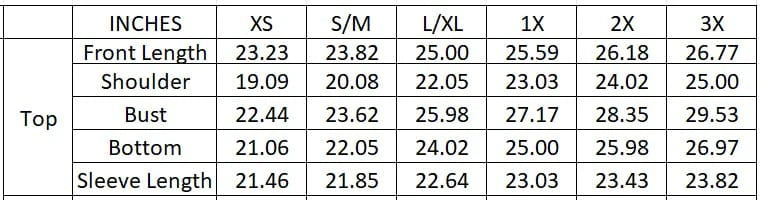 Sizes XSโ3XL