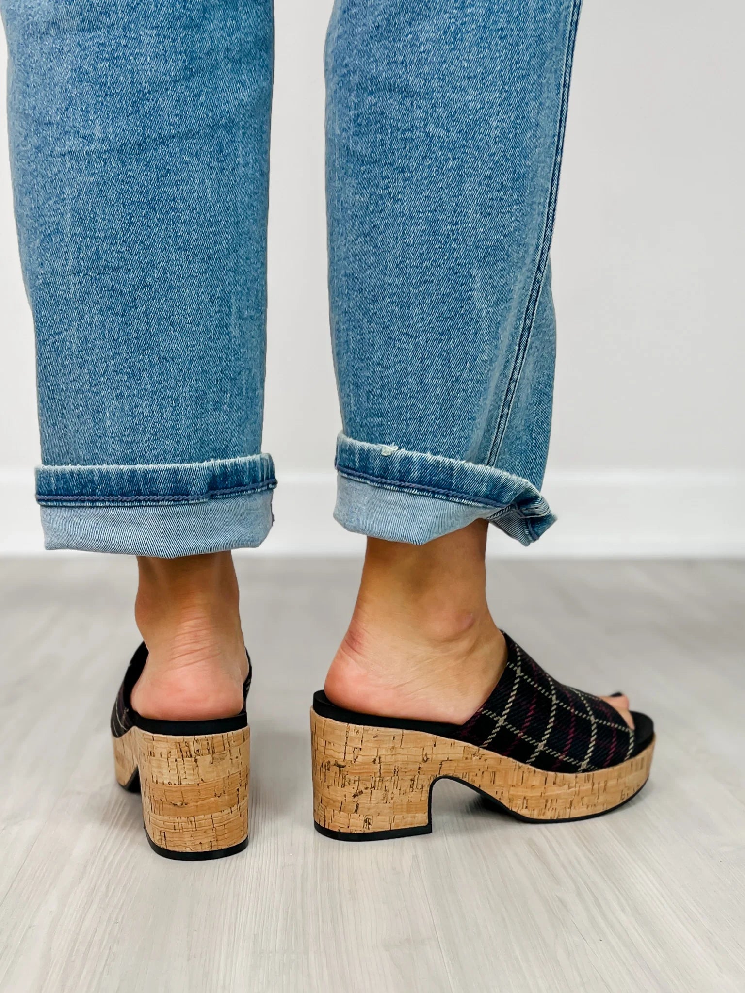 Featuring a black plaid crisscross upper, cushioned footbed, and lightweight cork-style wedge heel, they deliver comfort, height, and major attitude. Dress them up with your favorite denim or pair with a flowy fall dress for that effortlessly cool vibe.