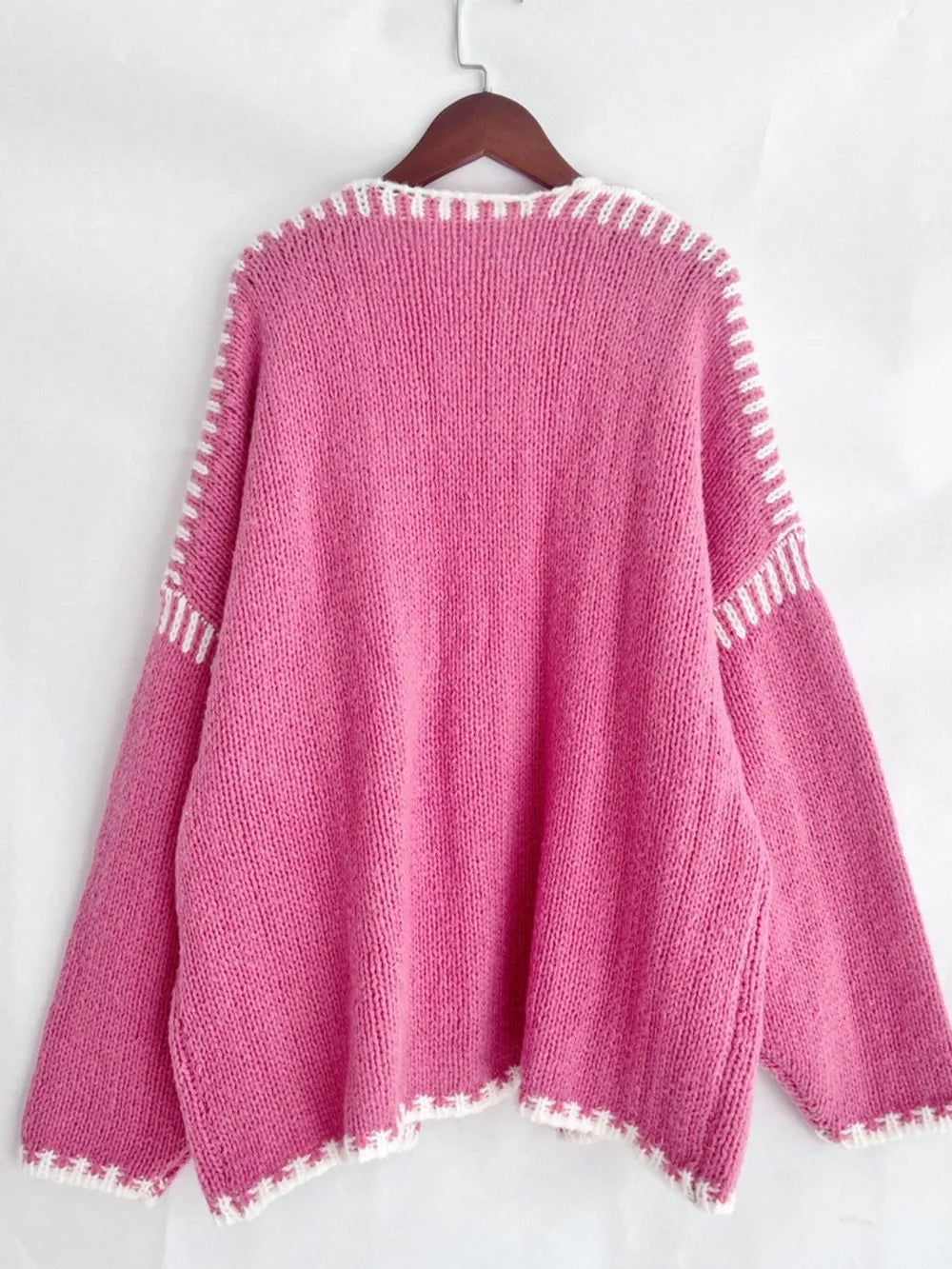 Double Take Contrast Open Front Dropped Shoulder Cardigan