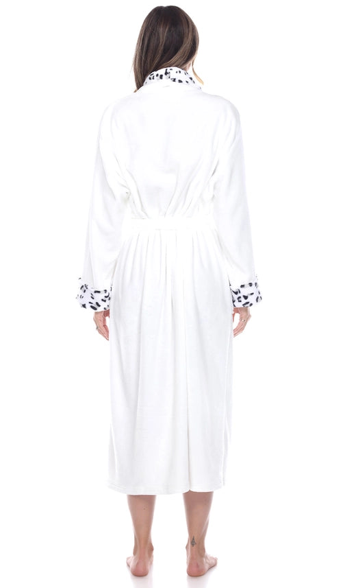 Cozy Leopard Trim Plush Robe – White or Pink | Sizes S-3XL