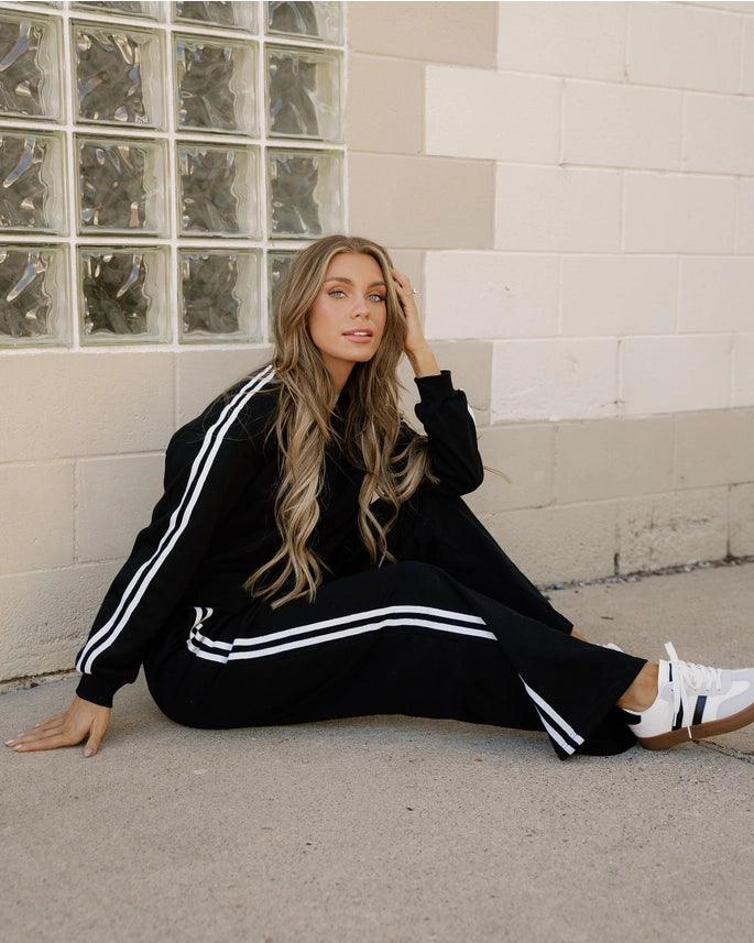 Indie & Co. Varsity Athleisure Set - Black | Pullover + Wide Leg Pants