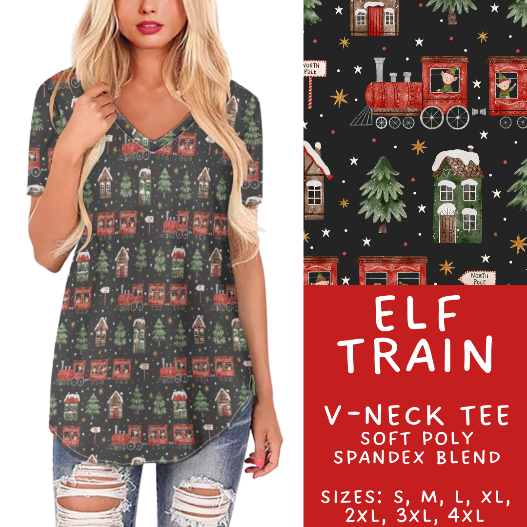 Batch #424 - Jingle All The Way - Closes 10/3 - ETA mid/late Nov - Elf Train V-Neck Tee