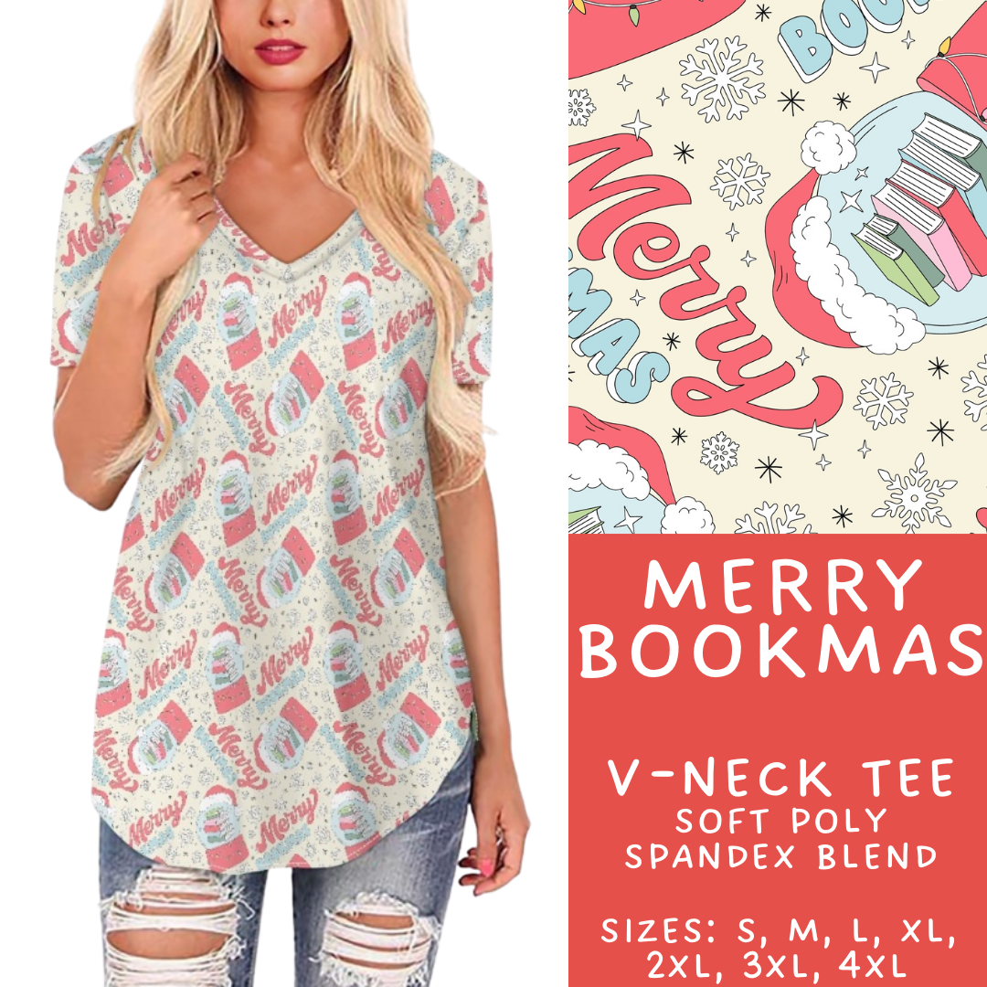 Batch #424 - Jingle All The Way - Closes 10/3 - ETA mid/late Nov - Merry Bookmas V-Neck Tee