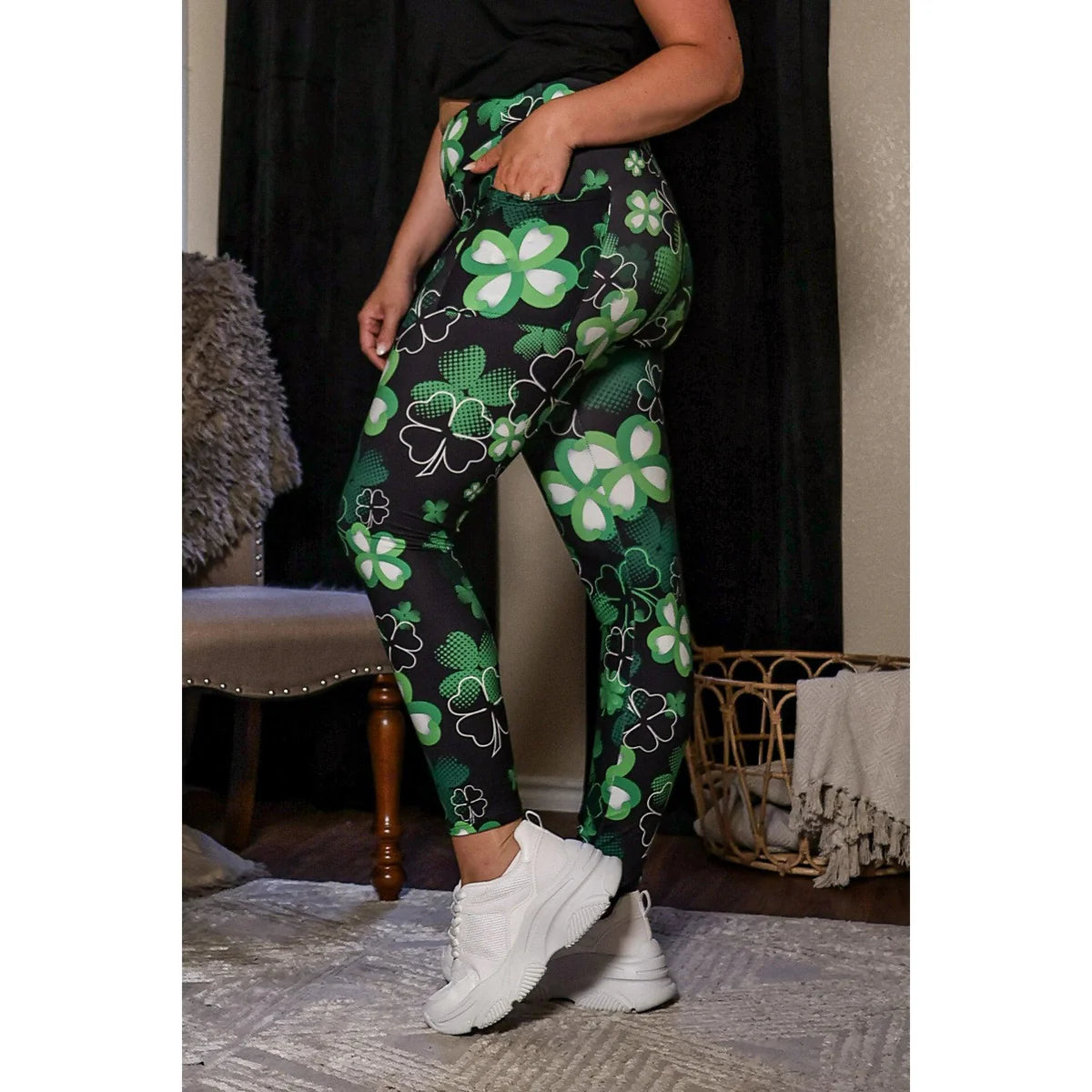 The Lucky Charm Shamrock Leggings by Julia Rose are a festive must-have for St. Patrickโ€™s Day and honestlyโ€ฆ any day you want a fun pop of green. Theyโ€™re buttery soft with that comfy stretch, a flattering high-rise waistband, and an all-over shamrock print thatโ€™s playful without being too much.