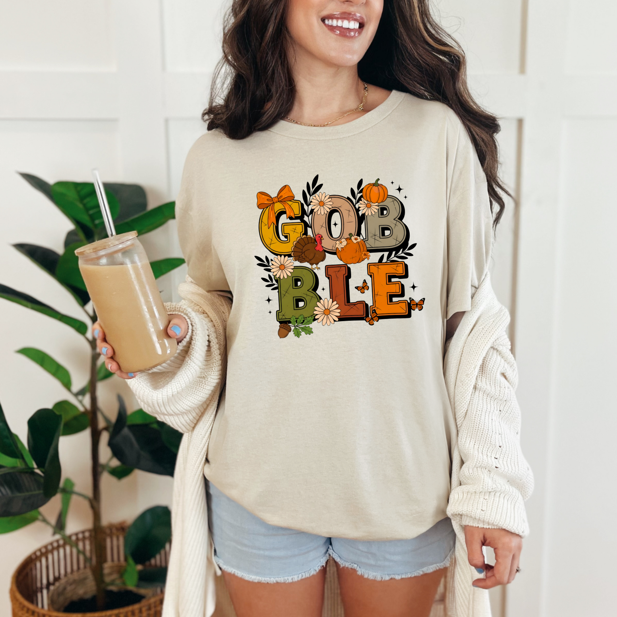 Celebrate Thanksgiving in style with this festive "Gobble" graphic tee! Featuring playful fall colors, pumpkins, and florals, itโ€™s the perfect mix of cozy and cute. Made from soft, high-quality fabric, this tee pairs perfectly with jeans or leggings for your holiday gatherings.