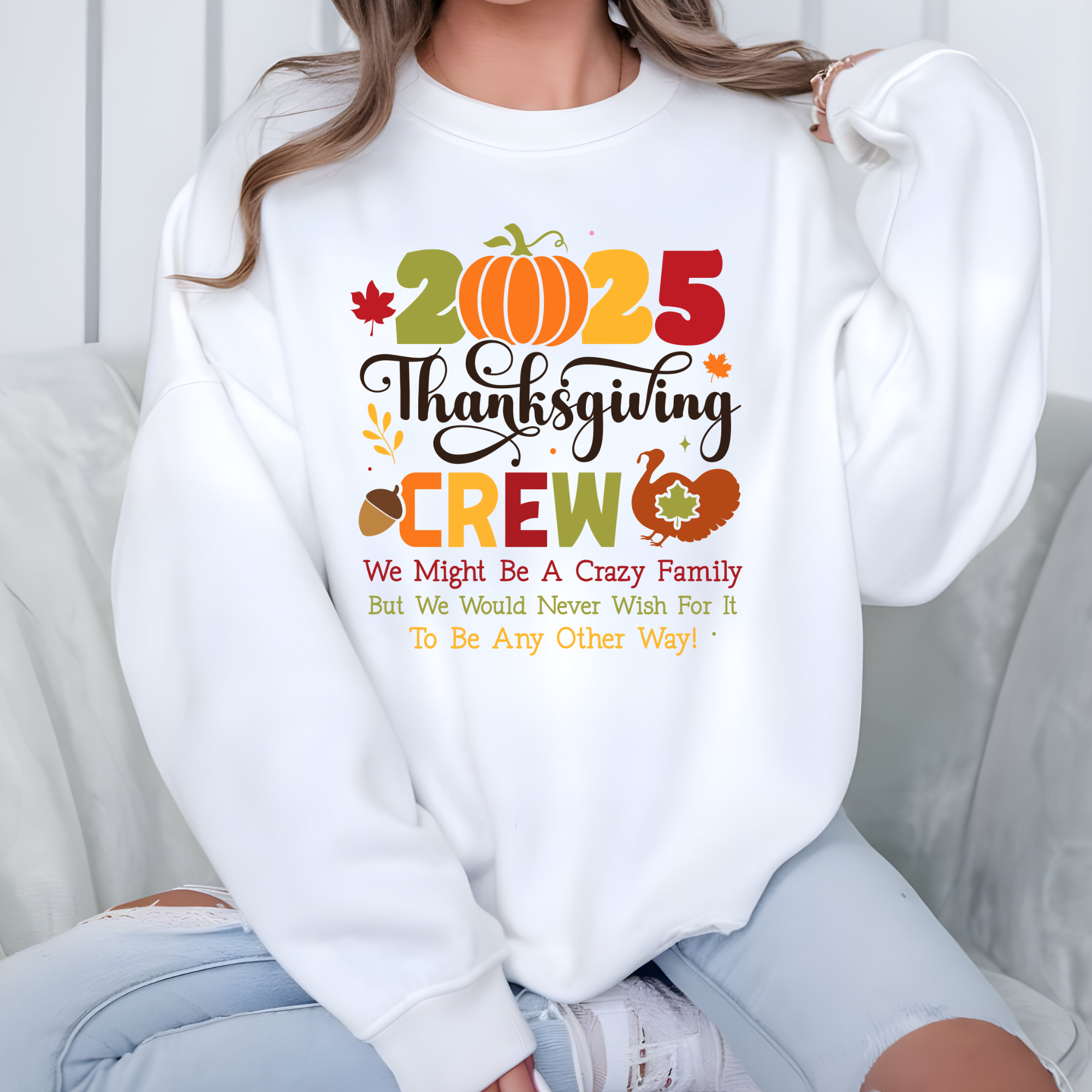 Celebrate the holiday in style with our 2025 Thanksgiving Crew sweatshirt! Featuring a playful design with festive pumpkins, turkeys, and fall colors, this cozy pullover is perfect for family gatherings and holiday photos. Made with soft, high-quality fabric, it’s comfortable enough for the big feast and fun enough to show off your holiday spirit.