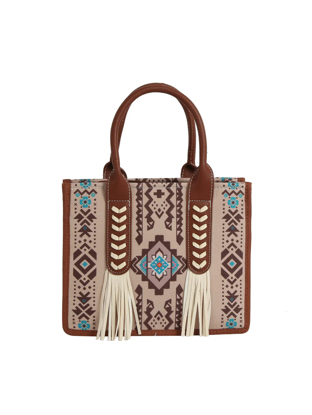Bring a touch of Southwestern charm to your everyday style with this Aztec Pattern Tote Set. Crafted from a durable canvas and vegan leather blend, this bag combines style + function in the best way. Each set includes a roomy tote and a matching zip pouch — the perfect duo for keeping life organized.