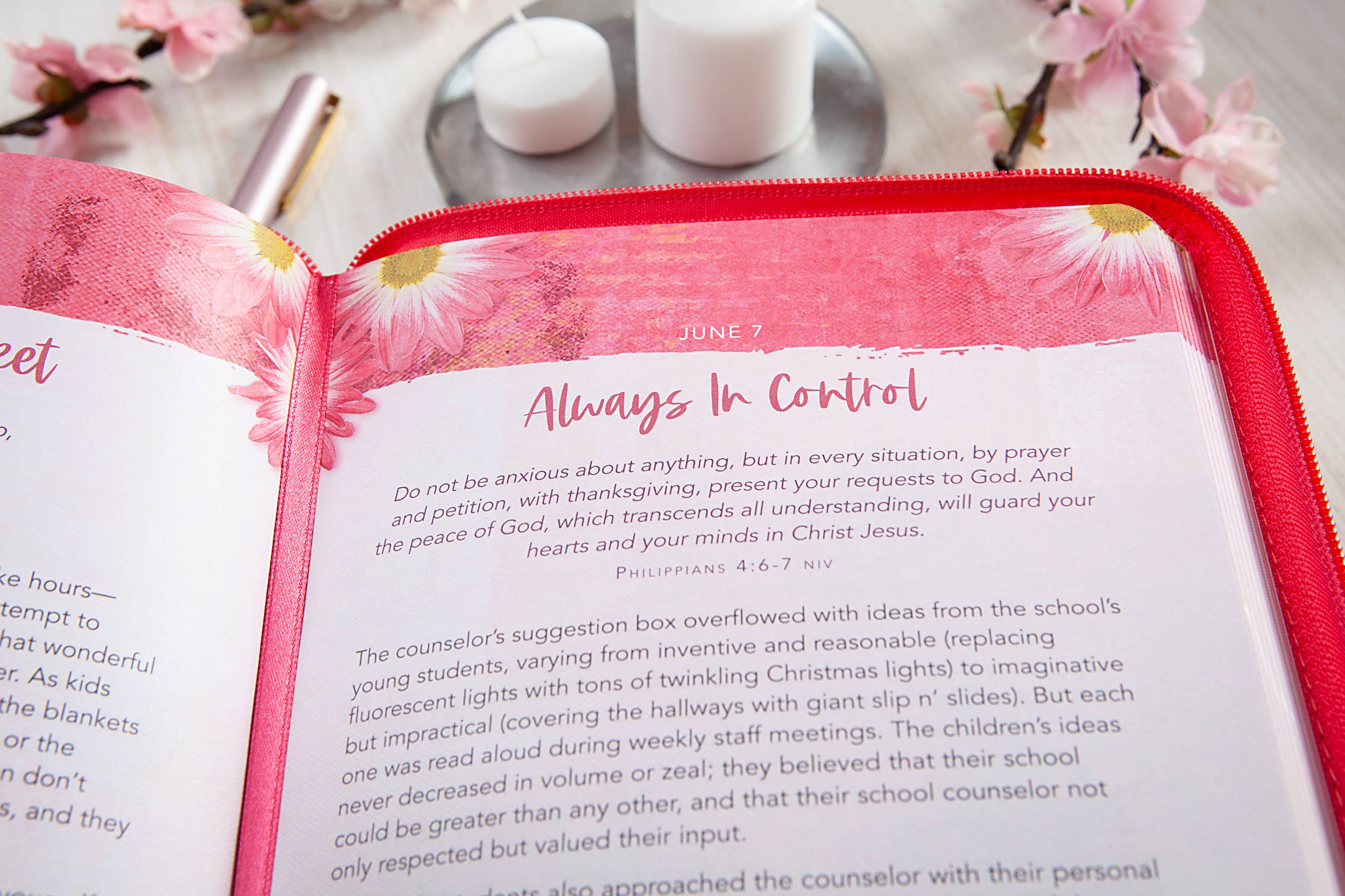 - Themed Encouragement: Features daily entries like "My Deliverer" (Psalm 40:1), "All Things Beautiful" (Ecclesiastes 3:11), and "Always In Control" (Philippians 4:6-7).